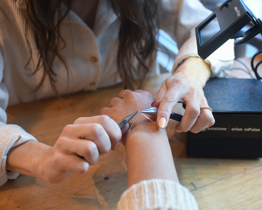 The actual welding of your permanent jewelry will take seconds, but your session will be about 10 minutes long. The TLR team will take care measuring, fitting, and welding your chain securely. Your permanent jewelry can be removed at any time using nail clippers to carefully snip the jump ring. Save those chains– they can be re-welded later! 💫See FAQs for more info and pictures!💫