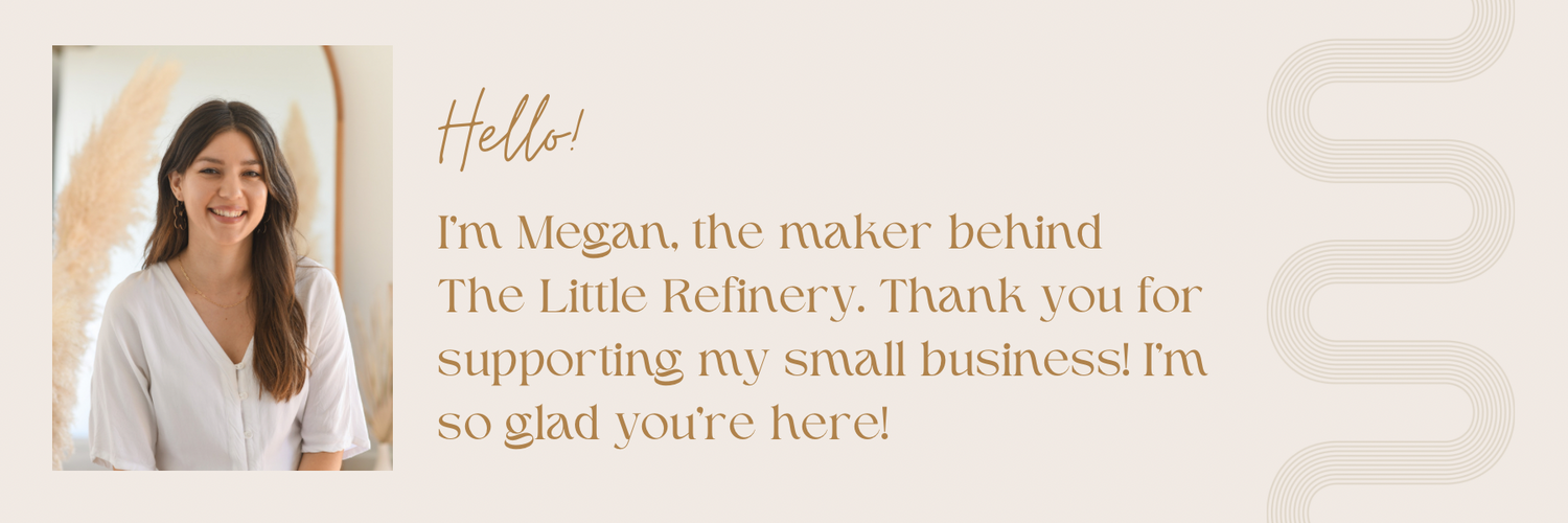 I put a lot of love into everything I make at The Little Refinery, so I truly want you to love everything you order! Please contact me if something isn’t quite right and I’ll work with you to find a quick solution.